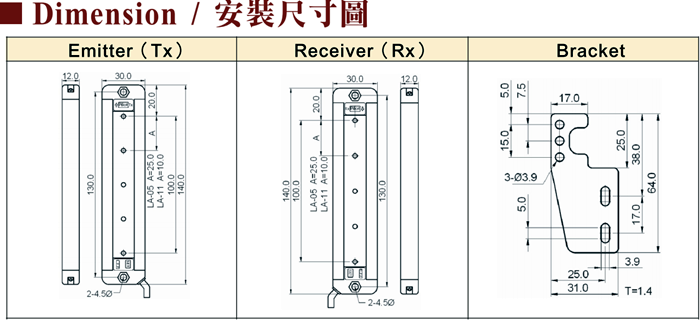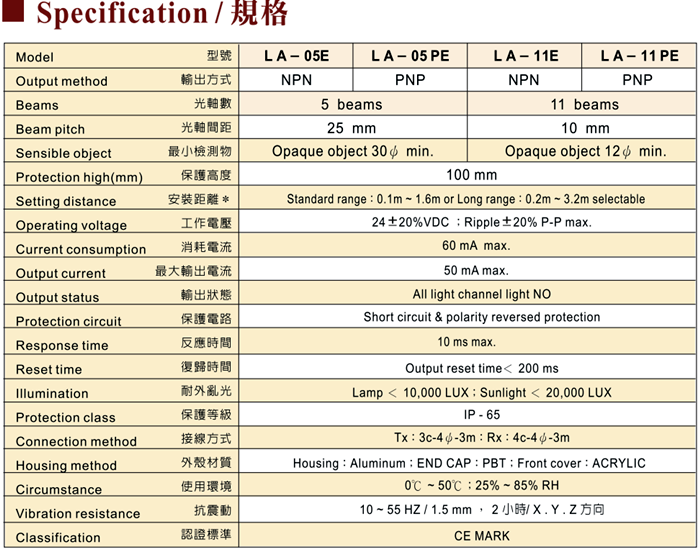 短型安全光栅产品选型资料LA系列下载地址